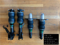 Airtekk airstruts with 33 way dampers shock and 3 ply rubber. Front airstruts with bellows, rears with slim bellows. Comes with spanner wrenches, 4 dampers, and 4 1/4 fittings.