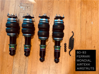 Airtekk airstruts with 33 way dampers shock and 3 ply rubber. Front airstruts with slim bellows, rears with slim bellows. Comes with spanner wrenches, 4 dampers, and 4 1/4 fittings.