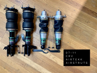 Airtekk airstruts with 33 way dampers shock and 3 ply rubber. Front airstruts with bellows and camber plates, rears with sleeves. Comes with spanner wrenches, 4 dampers, and 4 1/4 fittings.